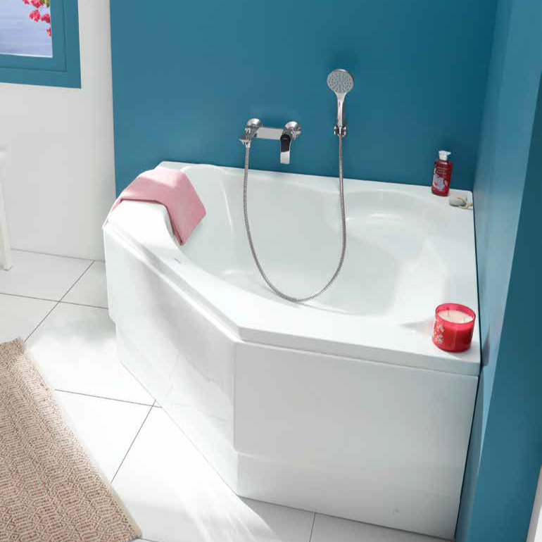 بانيو ديورافيت اكريليك سيملس ( كورنر ) موديل كابو مقاس ( 125 * 125 ) ابيض شامل طابق الصرف