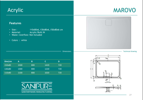 بانيو قدم سنيبيور اكريليك موديل ماروفو مستطيل ( تركيب بعد السيراميك )