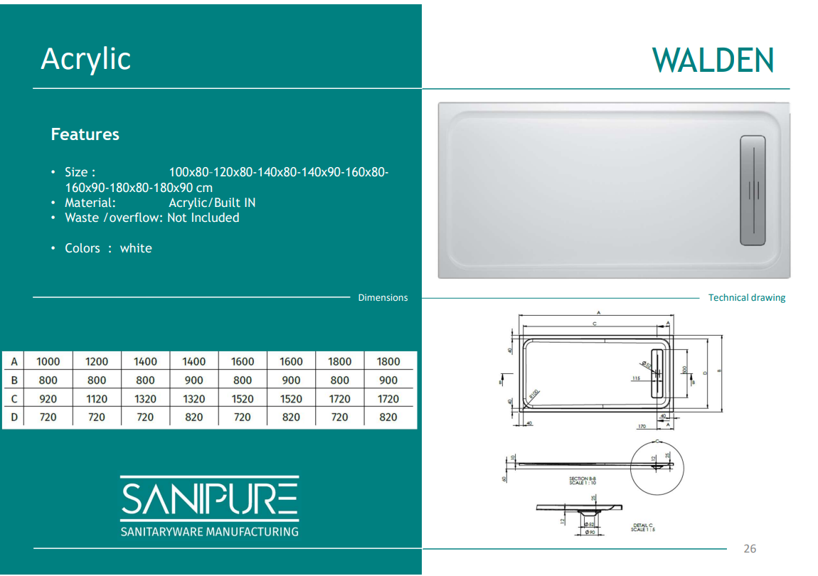 بانيو قدم سنيبيور اكريليك موديل والدن مستطيل ( تركيب بعد السيراميك )