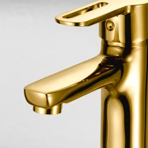 تصميم عصري طويل باللون الذهبي يضيف لمسة فخامة وأناقة على الحوض