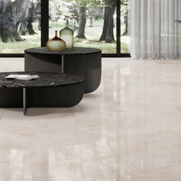 بلاطات سيراميك أرضيات كليوباترا 59.5×59.5 أزاليا إيفوري لامع – قص ليزر