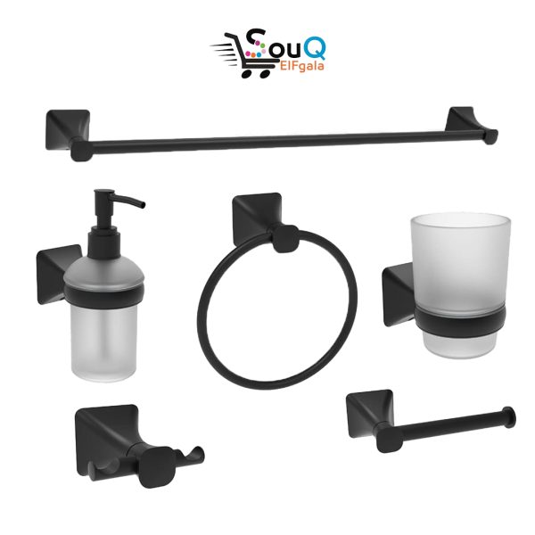 طقم اكسسوارت حمام 6 قطعه ستانلس شامل مجموعه التثبيت اسود مط ستاندرد كود 98100BLK