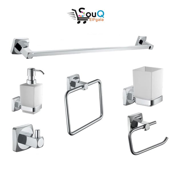 طقم إكسسوارات حمام 6 قطع ستانلس نيكل كروم ستاندرد