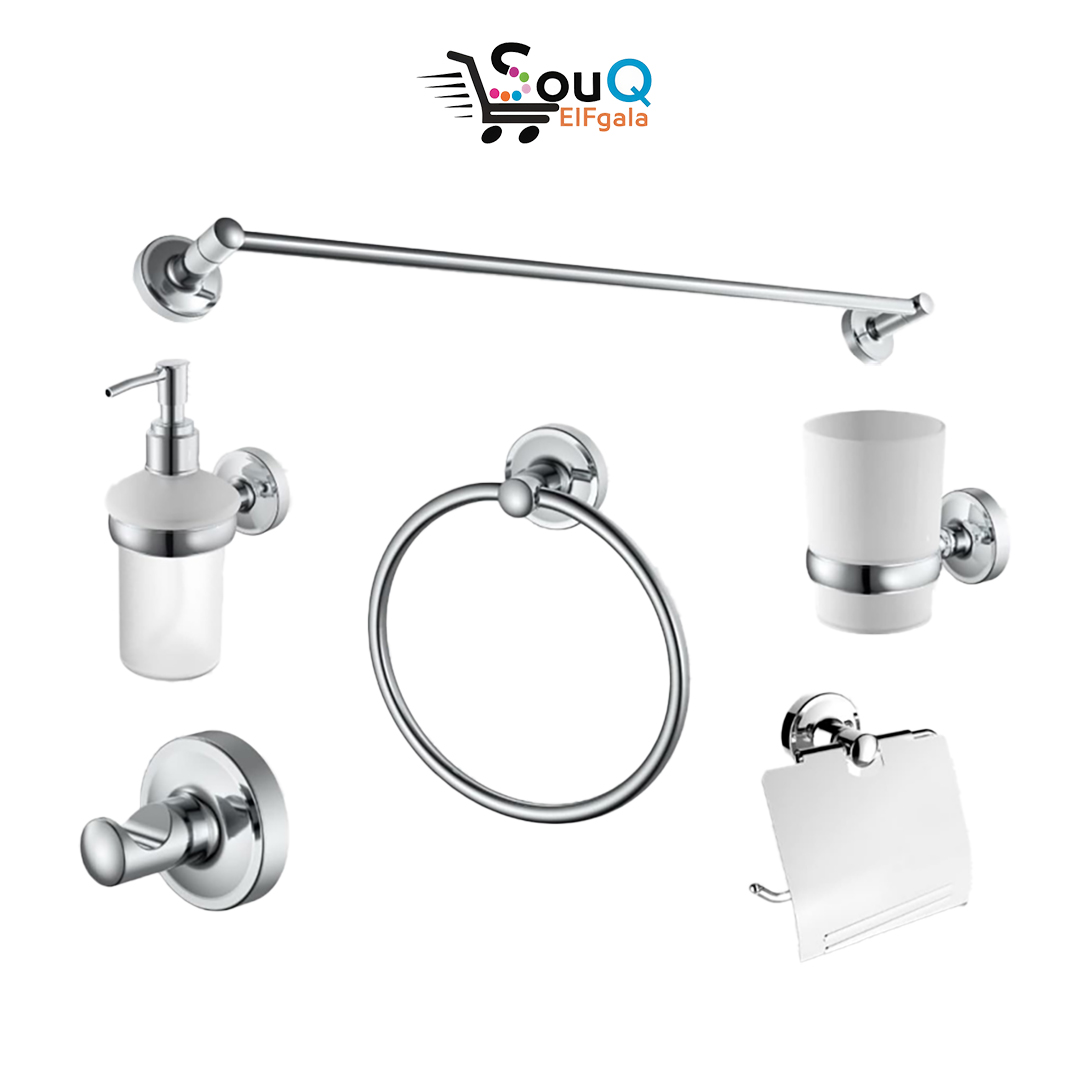 طقم إكسسوارات حمام 6 قطع ستانلس نيكل كروم ستاندرد