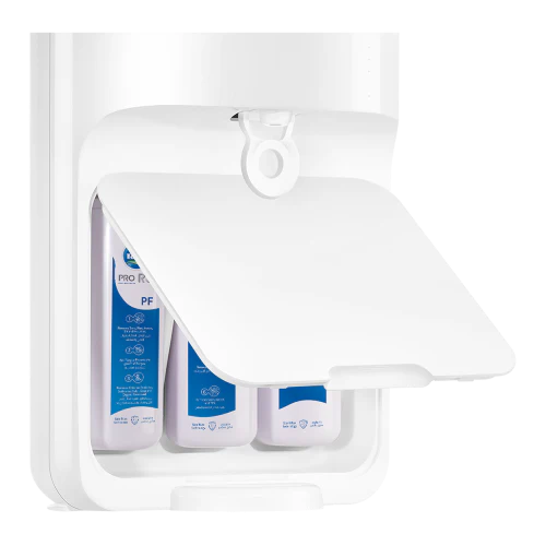• التقنية: نظام STERMAX لتعقيم 99.9% من المياه + تقنية RO لإزالة الأملاح والمعادن الثقيلة + تعقيم بالأشعة فوق البنفسجية (UV) + تقنية ProTime® مع حساس جودة مياه ومؤشرات LED للتذكير بتغيير الشمعة