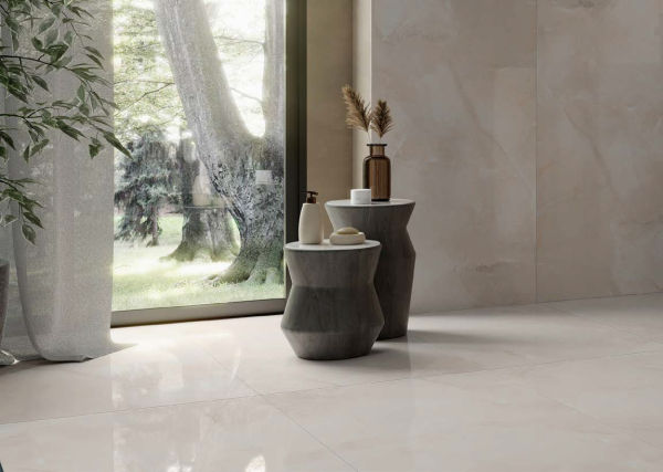 سطح لامع فاخر عالي الجودة يعكس الإضاءة ويُبرز أناقة المساحة