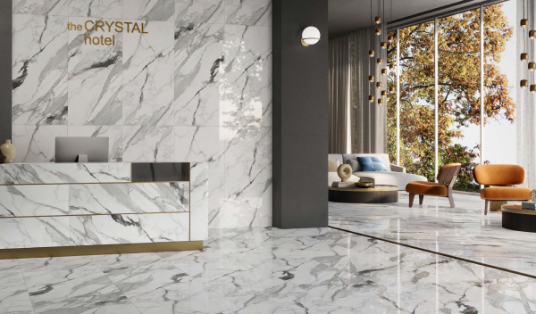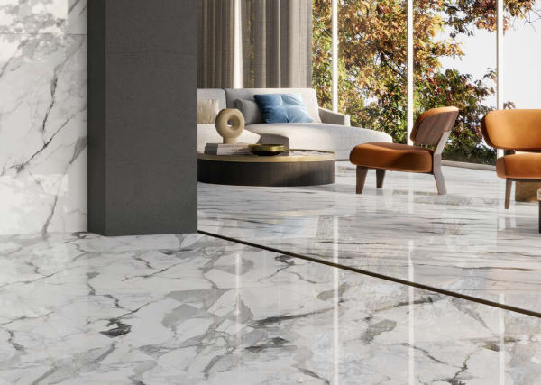 سطح لامع فاخر عالي الجودة يعكس الإضاءة ويُبرز أناقة المساحة